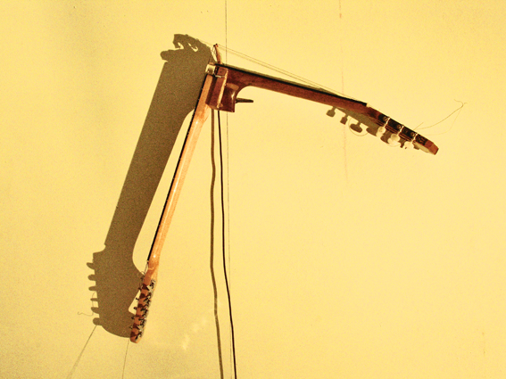 also in the 10×10-> 11 dada days in cabaret voltaire, I was able to challenge the two guitars together and now they will always stay joined together for a special cause.