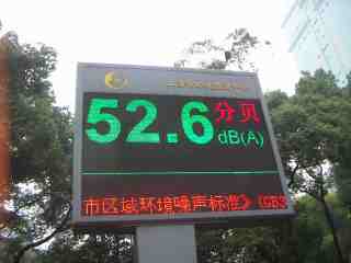 A skyscraper functioned as a full size screen with colours The biggest screen I ever saw. A flower dia slideshow was on. The whole skin of the building was illuminated. I would love to have the remote control and switch around like a tv from the other side of this same yangtse that’s entering the yellow sea in shanghai! As a good energy example and awareness tool I could only discover solarpowered decibel city sound measurement infopanel! (see image)
