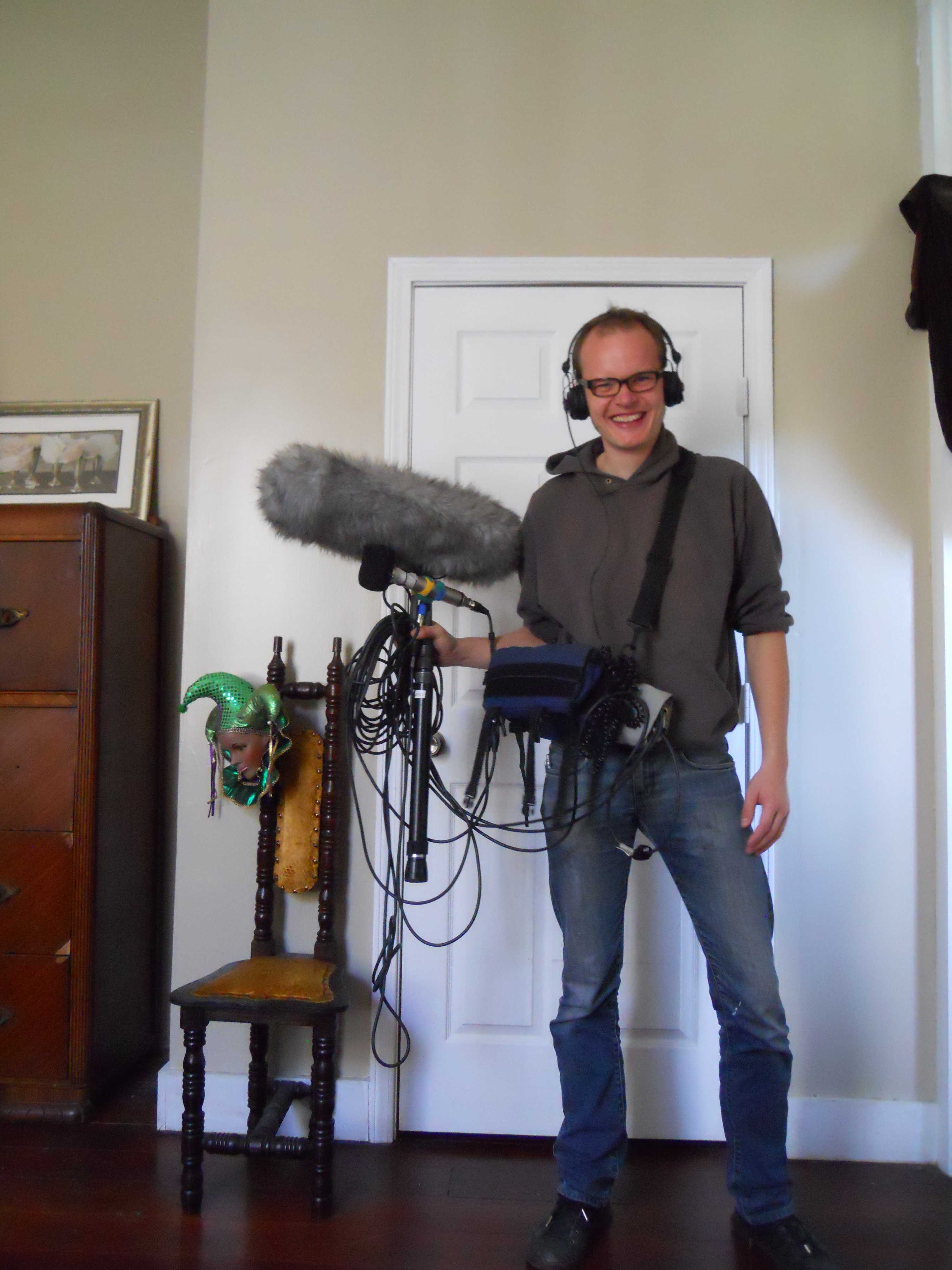 Our vision with 10×10->11 is, trying to use everyday another piece of waste and upcycle it into a musical instrument. Next to that we invited all musicians that would be interested to give it a try with us and our new instruments., The story of the waste is important and the fact that we take all day to have a look at it and try to convert it into something that sounds pretty. And all of this will be documented. Klaas is the soundman for the movie and he’s fully dressed for the job all the day. If you want check out